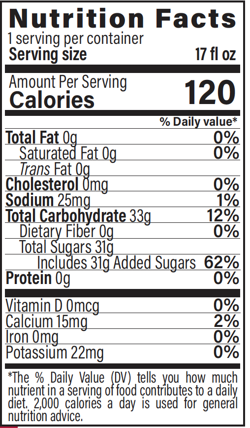 INGREDIENTS: Water, Cane Sugar, Citric Acid, Natural and Artificial Flavors, Aspartame*, Sodium Benzoate and Potassium Sorbate (as preservatives), Acesulfame Potassium and FD&C Blue #1.